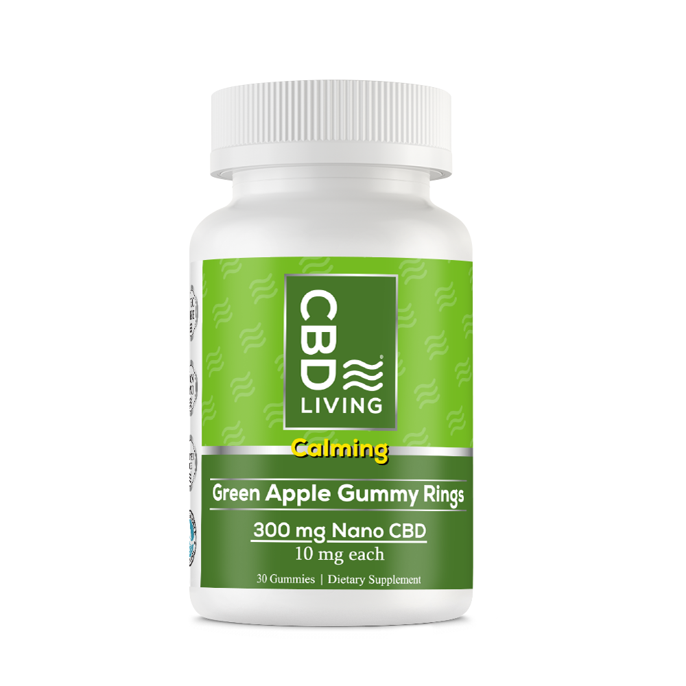 - Each CBD Living Apple Gummy Ring contains 10 mg of nano-CBD, 10 calories and 4 grams of sugar.