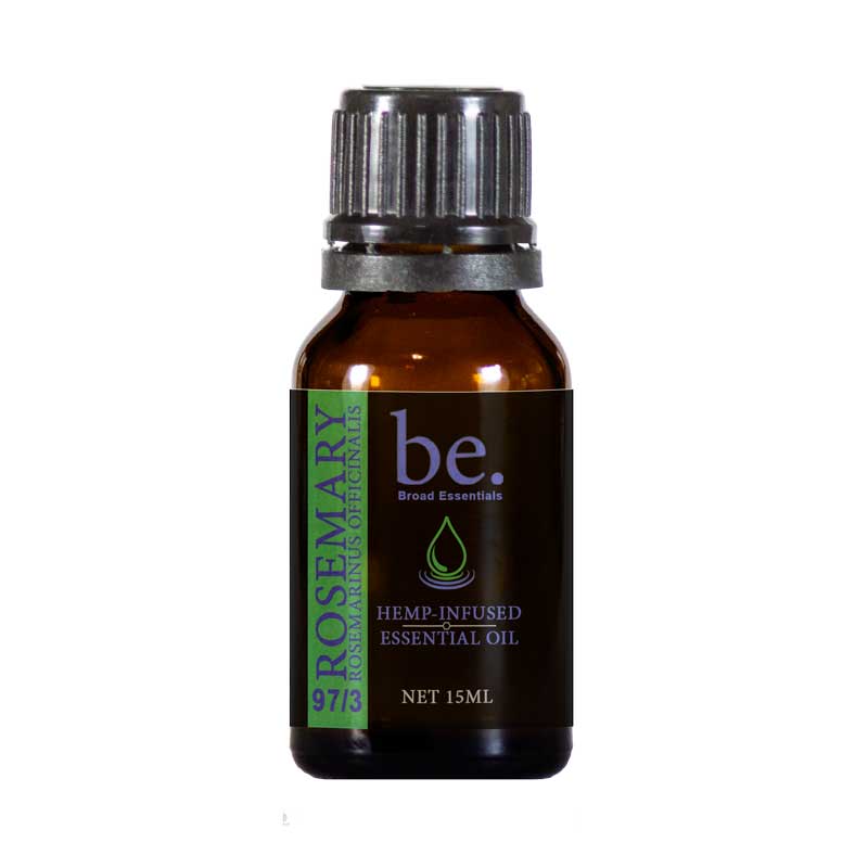 Rosemary CBD Essential Oil, when diffused, has a herbal aroma that can help reduce stress and tension, manage pain and inflammation as well boost mental clarity and focus, relieve fatigue, improve moods and support your respiratory system. When added to a homemade/commercial topical or directly to skin, it adds a pleasing scent and a variety of benefits from managing pain and inflammation, fortifying the immune system and stimulating hair growth.