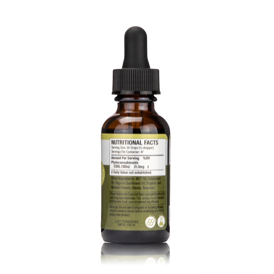 Ingredients: Raw Hemp Oil, MCT Oil, Grapeseed Oil, Organic Sunflower Oil, Organic and Natural Flavors, Stevia, Terpenes