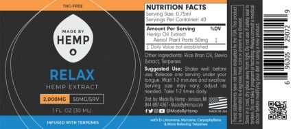 Ingredients: Raw Hemp Oil, MCT Oil, Grapeseed Oil, Organic Sunflower Oil, Organic and Natural Flavors, Stevia, Terpenes