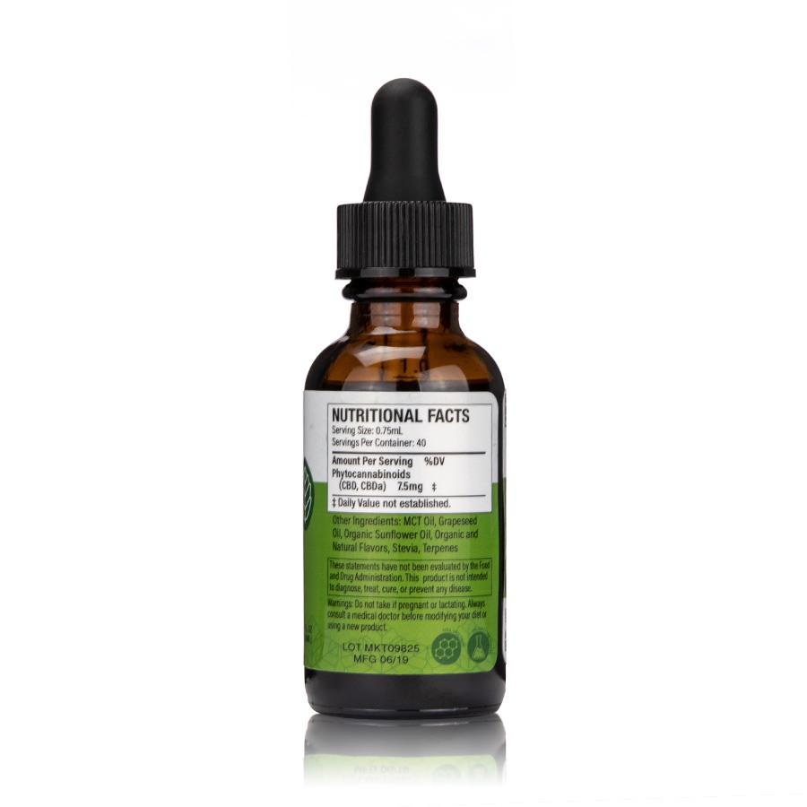 Contains: Full-Spectrum Hemp Oil, MCT Oil, Grapeseed Oil, Organic Sunflower Oil, Organic and Natural Flavors, Stevia, Terpenes